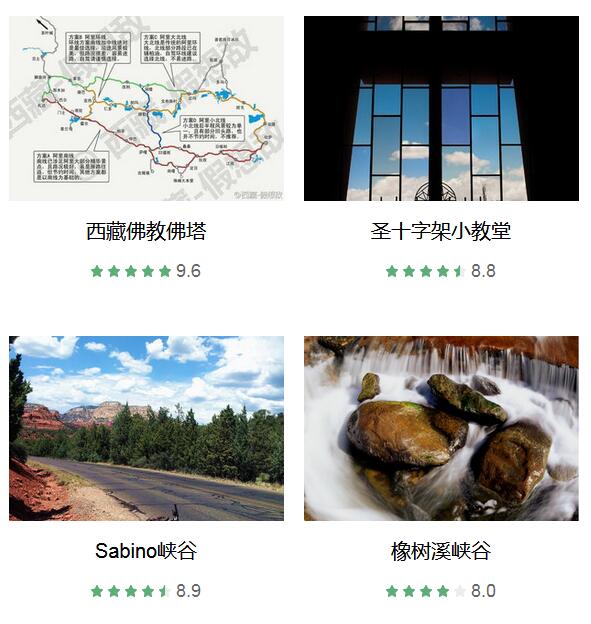 西藏佛教佛塔 、 圣十字架小教堂 、 塞多纳钟岩 、 大教堂石 、 Sabino峡谷 、 橡树溪峡谷 、 魔鬼桥 、 史努比岩石 、 塞多纳机场 、 粉色吉普团 、 塞多纳七圣池 、 滑岩州立公园 、