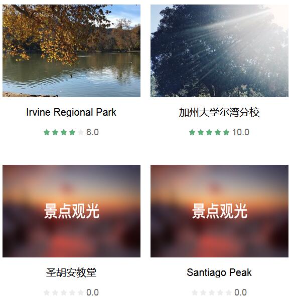 Irvine Regional Park 、 加州大学尔湾分校 、 水晶大教堂 、 四海豆浆 、 橙县奥特莱斯 、 橘子郡大公园 、 鼎泰丰 、 三年2班 、 尔湾光谱购物中心 、 沸点 、 圣胡安教堂