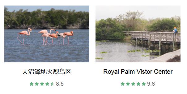 大沼泽鳄鱼场 、 大沼泽游猎公园 、 大沼泽地火烈鸟区 、 大沼泽地国家公园 鳄鱼公园 、 Royal Palm Vistor Center 、 大柏树国家保护区